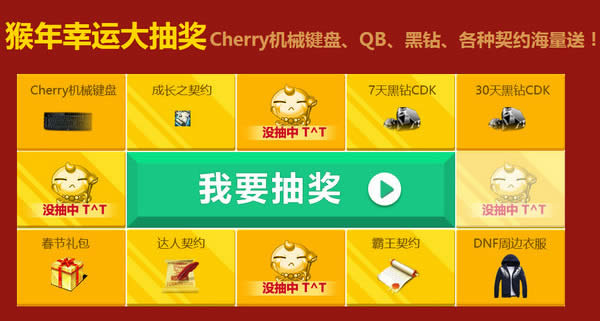 dnf推出猴年幸运大抽奖,更有机会免费获得dnf春节套,下面pc6小编为大家详细介绍一下。