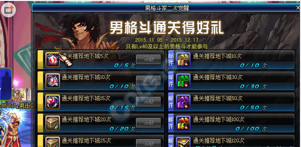 DNF男格斗二次觉醒终于在大家的期待中到来了,在男格斗二觉到来的同时DNF也推出了最新的男格斗通关得好礼活动来庆祝,下面就跟随小编一起来了解一下吧!