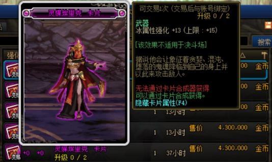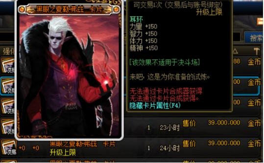 另一个即是疯魔索伦,满属性四维可达70的传说卡片。以笔者所在的跨六为例,前者只要180万金币,而满属性的疯魔索伦则需要1800万金币,两者相差十倍。