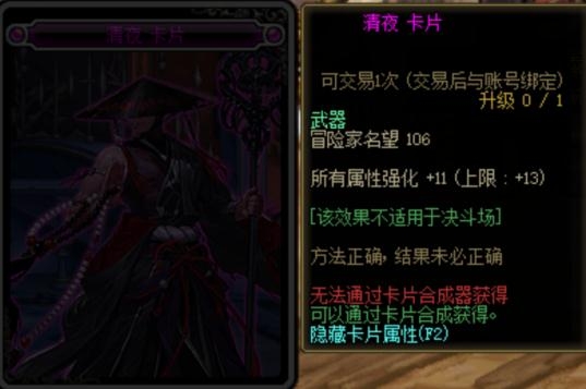 该卡片为武器附魔,提供了全属强+11的属性,满属性则为+13的属性。