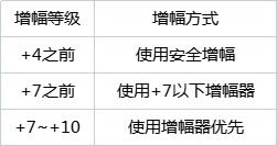 +7~+10:建议使用普通增幅器,安全增幅武器期望值已经超过部分活动时+10增幅卷价格,花2~3千万从+7增幅到+10不划算。