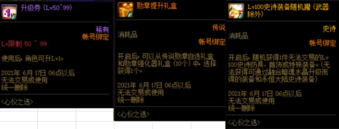 累积的有50-99升级卷,勋章提升礼盒,100级史诗装备罐子