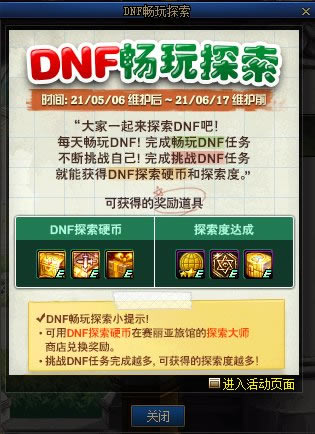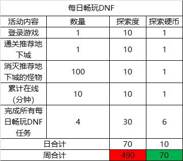 畅玩任务分为每日任务和每周任务,完成之后不仅可以得到DNF探索硬币,还可以累积探索度。