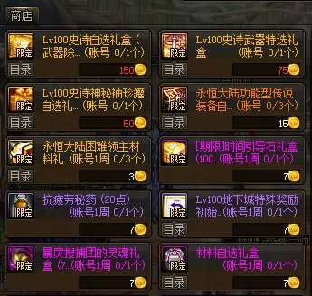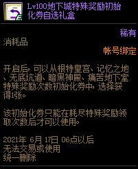 注意:100级地下城特殊奖励初始券自选礼盒不可以重置黑鸦之境的每日特殊奖励