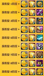 探索度分为9个阶段,每个阶段都有各种奖励可以领取哦!DNF探索硬币可以在赛丽亚房间内探索大师处兑换奖励。