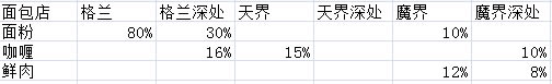 TIP:如果你缺其中某种材料,就可以找到表格产出地当中概率最高的地方专门去刷,比如你需要面粉,刷格兰之森入口,80%出的都是面粉