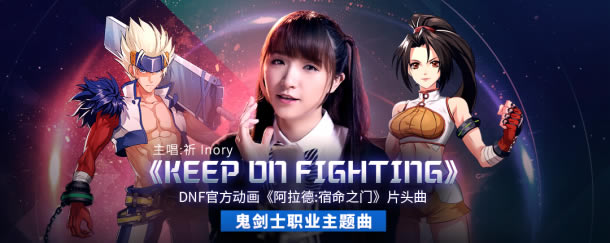 要点燃玩家们的激情,不仅要有火爆的画面,更需要激情满点的声音来助阵。DNF为了本动画的创作,特地邀请了曾经为天后王菲打造个人专辑的香港传奇音乐大咖梁翘柏为动画OP《Keep On Fighting》谱曲,火力四射的曲调和强劲有力的节奏,加上知名二次元歌姬祈Inory的倾情献唱,将沉淀了近十年的玩家热情彻底点燃。