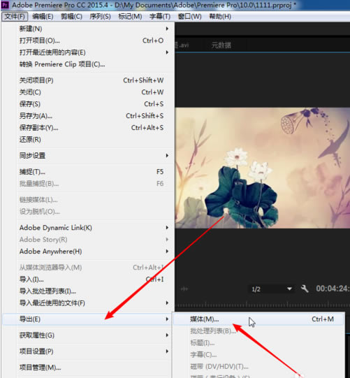 6、剪辑完成后点击Adobe Premiere上方的文件,选择导出、媒体,或者按下Ctrl+M,即可设置导出我们的剪辑视频
