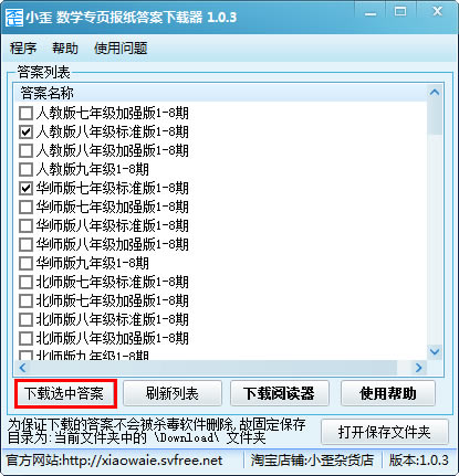 4.选择需要的答案,将答案名称前面的选择框打勾,并点击”下载选中答案”按钮,如图: