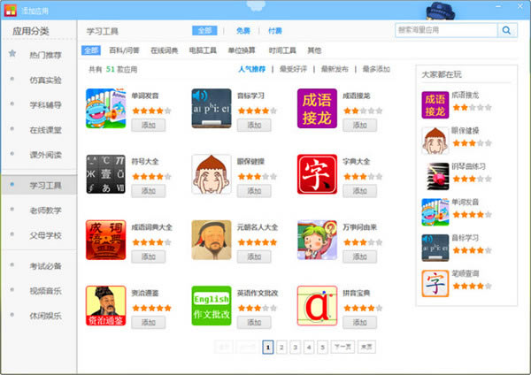 提供海量优质学习应用、并带有学校应用、推荐应用