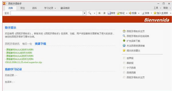 西班牙语助手收入西汉词条180000个、汉西词条245000个, 词库总量达80MB,具有西汉、汉西、西西、西英四向词典,完整音标支持,并收入医学、生物、计算机等专业词库