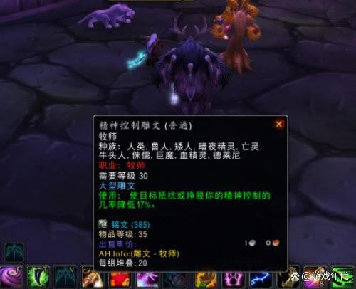 10人教官有两个宝珠让玩家控制小怪,但是25人必须有牧师(至少2个),而没有精神控制雕文的牧师,心控失败率实在太高了,打上雕文后效果立竿见影,小怪基本摆脱不了控制,命中率100%。只要小怪牢牢掌握在玩家手中,这个BOSS通过率就是100%,本身也没什么杀招和难躲的技能,直接轰杀就完事了。但是真正的难题才刚刚开始,很多人注意到该雕文的价值,早就把拍卖行的货扫空了,然后直接在世界上叫卖,价格高达200金。