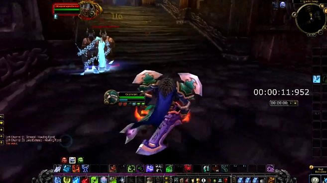 通道中间的2波小怪需要注意,这里必然会被小怪打几下,DK需要切换冰霜灵气,同时开启冰封之刃技能,以此来增加自己的护甲和降低自己受到的伤害(冰封之刃可以免疫眩晕)。