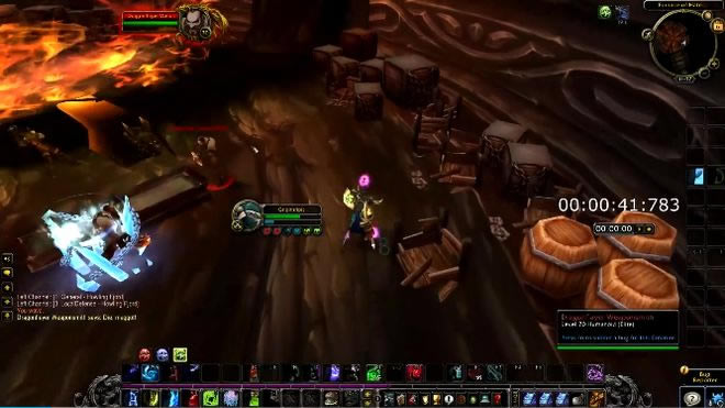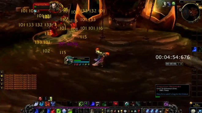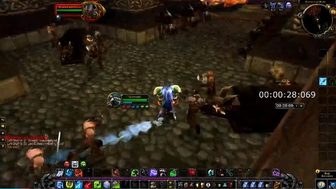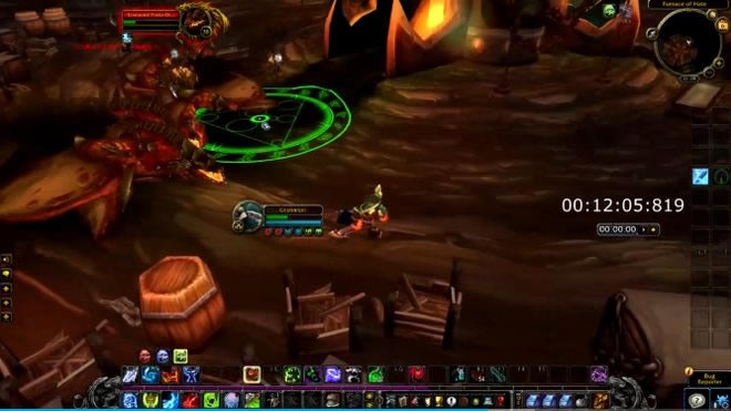 火墙挡路的时候,这里的1波小怪仇恨是联动的,没有必要刻意去打铸造大师,随便打一下小怪铸造大师都可以进入战斗,火墙也会随之消失。如果这时有小怪靠近,DK使用冰霜之链减速近身小怪就行,这样可以确保自己的安全。