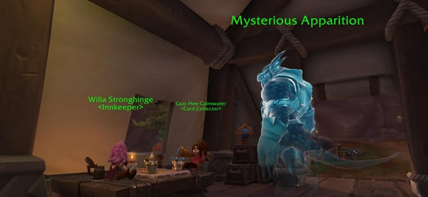 我们和龙兽鬼魂一起回去找郭希,但他的出现差点吓到了在和郭希打炉石的旅店老板。