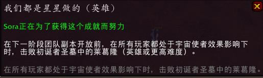 现在测试服客户端新增了两个相关成就(无成就点),分别要求在英雄/史诗难度下完成,且必须在下一阶段团队副本开放前。(按照成就字面意思,完成一次史诗成就可同时获得两个成就)