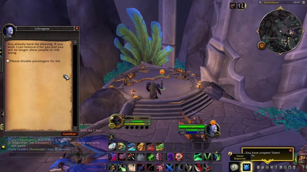开启功能需要前往瓦德拉肯,从驭龙术训练师Lithragosa处获得祝福,然后才能带人。关闭功能则是在同一NPC处再次对话,选择移除祝福。