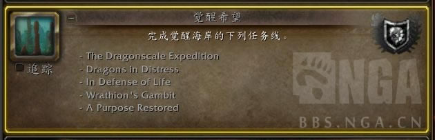 为了方便阅读,用觉醒海岸的主线任务成就[觉醒希望]来给任务做分类