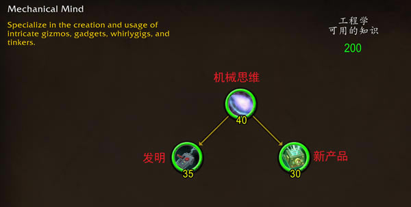 机械思维:擅长制造和使用复杂的小工具、小玩意儿和工匠;但这些知识对你作为一个工程师的成长是非常宝贵的,在这个专精中每点获得所有工程制作+1技能。共计消耗40点知识点数。其中