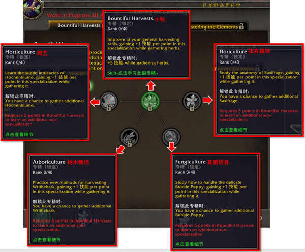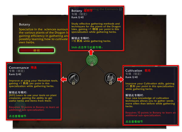 研究巨龙群岛上 觉醒元素的复杂性以及其对植物的影响。在这个子专业中每获得1点,采集元素充能草药时+1采药技能