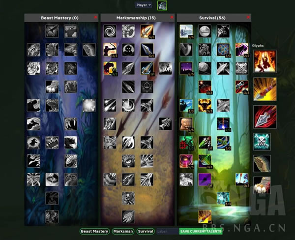 与tbc不同的是,wlk天赋不再像当初兽王天赋一样41/20/0走天下了,在后续版本开放T8/T9/10以后,天赋会根据套装收益而进行微调,下列列出一个版本初期生存天赋