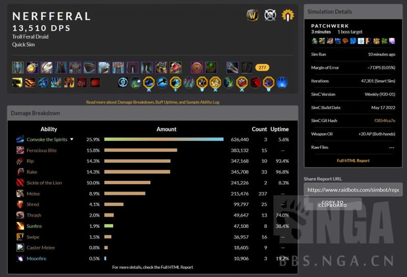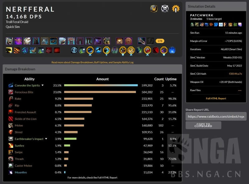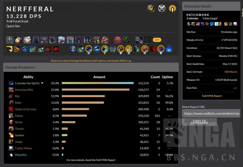 咆哮天赋带来的各类流血增伤收益超过了丛林之魂带来的撕咬数量收益。