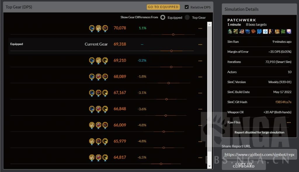 接下来给大家提供以我的一套装备基础得出的模拟结果,相信大家通过模拟数据可以对我所说的了然于心。