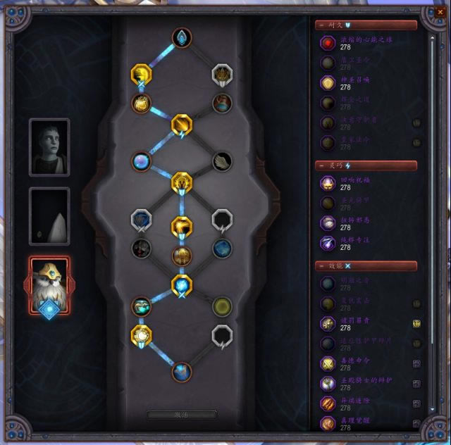 通灵:高圣能获取,同样的配装循环下可打出大量额外的圣令和盾击,强大的抗高压自疗循环能力