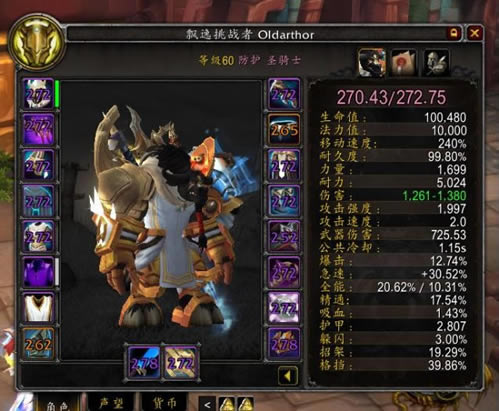 装等270,5件套穿齐,审判橙护腕,团结橙腰带,饰品部位带了一个被动pvp急速单纯凑绿字的,另一个带溅血作为白板为了不影响测试。