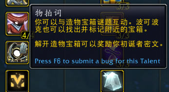 完成造物宝箱谜题可获得3个初诞者密文左右。每天最多可以和10个造物宝箱谜题互动。造物宝箱谜题需要先研究“物拍词”天赋才能与之互动,可选择花费9点波可波克能量直接完成谜题,也可花费2点波可波克能量通过完成消消乐、拼图之类的解密小游戏来完成。具体可参考[[PTR] 扎雷殁提斯的造物宝箱]。