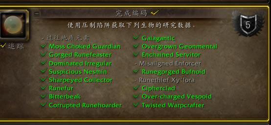 这个成就需要菲利姆提供的观察研究日常任务道具物品压制陷阱或不稳定的压制陷阱道具(持续8小时)来完成。