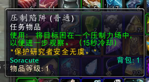 初次完成观察研究任务后,可向菲利姆对话索要不稳定的压制陷阱道具(持续8小时),或者可以选择不交任务一直使用任务道具压制陷阱。