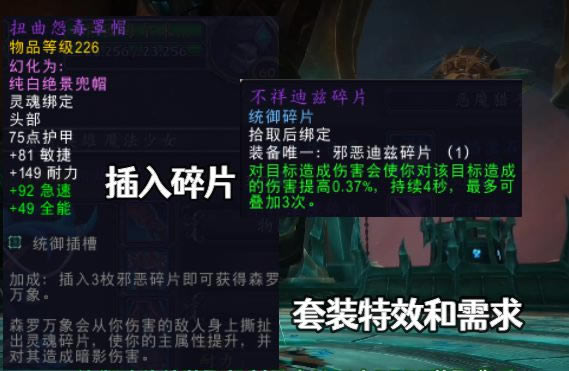 部分团本掉落的装备带有统御插槽,里面可以插入一枚任意属性的统御碎片。而当你达到装备的要求,如“全身共插入3枚邪恶属性的统御碎片”后,还可以解锁装备蕴含的强大特效。所以千万要记得去团本里玩玩看!