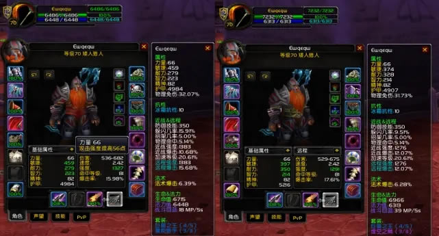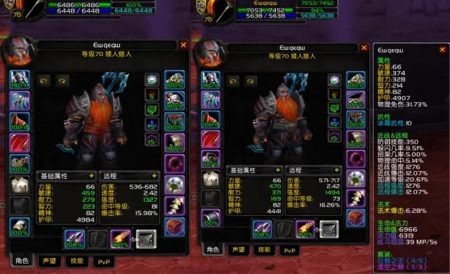 上面是魔能猎手套装和黑色虚鳞套装的属性对比,可以看到在其他装备都不变的情况下,魔能猎手仅仅比黑色虚鳞少了1.63%的暴击(35点暴击等级),却多了34点攻强,可见两者之间的差距微乎其微。