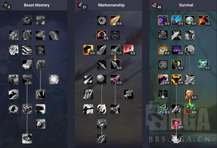 生存猎需要慢速武器,相较于兽王猎在循环中加入多重射击和奥术射击来提升[破甲虚弱]覆盖率