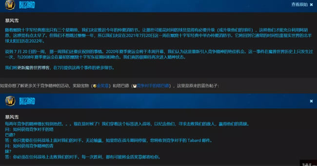 下图蓝贴机器翻译,意思就是TBC(燃烧的远征怀旧服)才刚刚发布,本来是要跳过今年火焰节到明年的,但是暴雪又觉得太久了正好,7月20日那一周开夏季奥运会,和2008年的奥运会竞技场活动开启时间差不多,就一起开吧!垃圾翻译,翻译错的话不要骂,反正大概就是这个意思