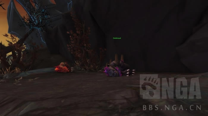 大部分碎皮兽都很凶,不过这个叫做暗殴的碎皮兽意外的好脾气。它栖息在图中红色的地方,你可以在图中黄色的地方找到一些可以交互的蘑菇,这些蘑菇一般长的位置比较奇怪,不过你可以和蘑菇互动,然后摘蘑菇给暗殴吃。