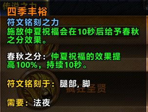 暮秋祝福:祝福一名盟友,持续30秒,使其冷却时间恢复速率加快30%。