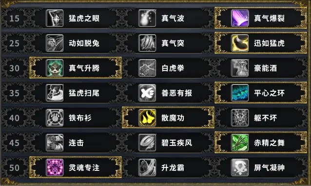 单体输出手法下,基本上可以视作8.0的踏风武僧,在资源打够五豆后,安排老虎与骨尘酒卡CD旭日怒雷破即可。