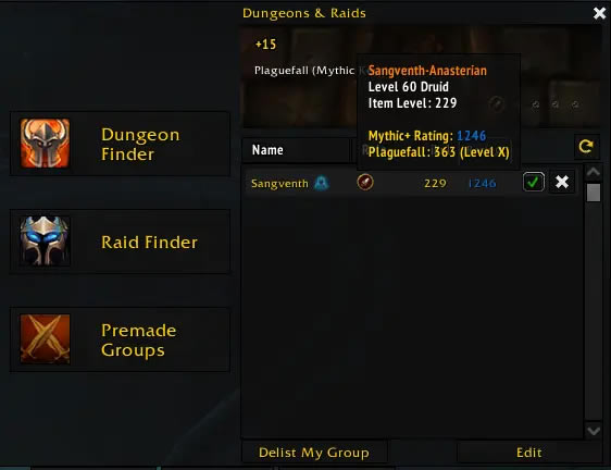 在预创建队伍界面,除了标准的名字、职责、装等外,你还能看到所有申请者的大秘境分数。队长通过内置的评分系统来帮助他们邀请合适的队员,而不再需要额外的插件,例如Raider.io