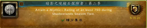 在暗影国度史诗钥石第二赛季中获得至少 750 大秘境评分。