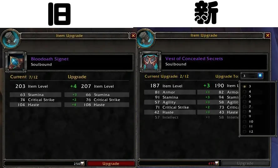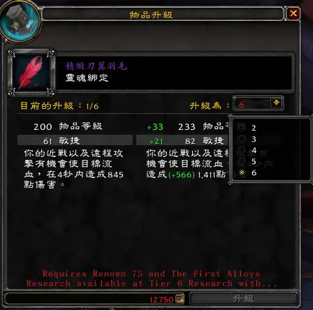 9.1PTR中装备升级系统得到了优化,额外增加一个下拉菜单,允许玩家自由选择提升的等级,不在需要一级一级的升。