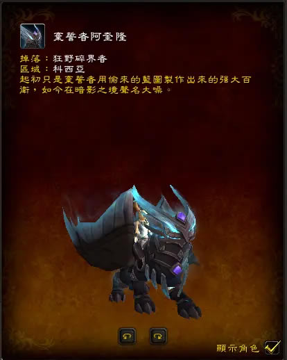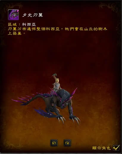 激活方式 : 事件激活,需要给巢穴缴纳6个“遗失的刃翼蛋”,直接获取坐骑(不排除正式服变更)