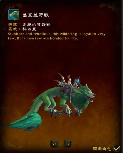 法夜外观 稀有怪:逃脱的荒野兽 激活方式 :事件,需要先敲鼓激活稀有再击杀然后骑乘坐骑上天完成事件获取宝箱,几率开出