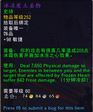 使用:对目标造成7650点物理伤害,你和受冰冻之心效果影响的目标之间的敌人受到642点冰霜伤害。