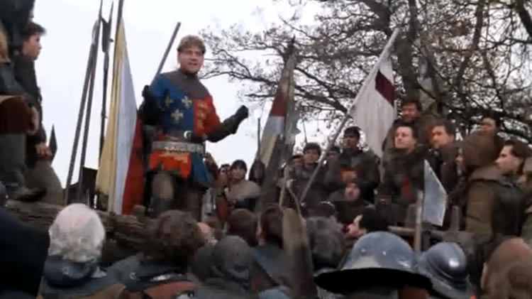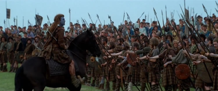 电影《勇敢的心》,威廉·华莱士带领苏格兰人揭竿而起,反对英格兰暴政,争取自由的战前演讲。
