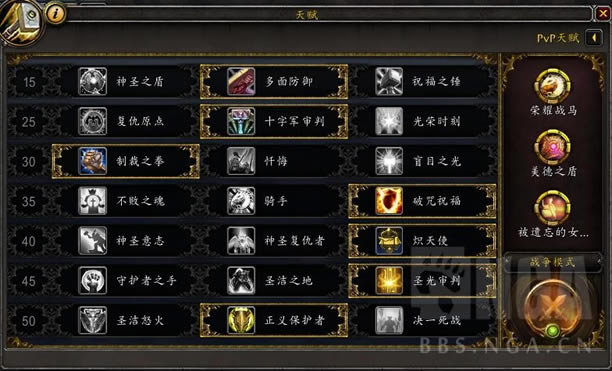 耐久-决意守护者(防骑机制核心)>盾卫圣令(高频大掉血带)≥辉金之道(平稳掉血带)>神圣召唤/皇家法令(取决于战斗机制)