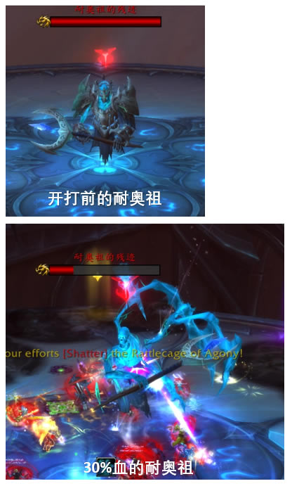 一块禁锢着耐奥祖残迹的护甲裂片脱落下来,对所有玩家造成12,412点暗影伤害。