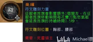 通灵领主——荣耀:征服者战旗额外影响1个同伴,并且征服者战旗激活时每消耗10(防护)/20(武器、狂怒)点怒气使持续时间延长0.5秒。