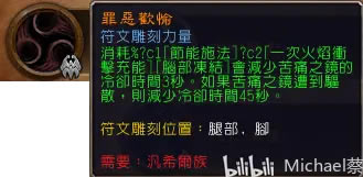 温西尔——罪恶欢愉:消耗冰冷智慧/节能施法/火焰冲击层数使折磨之镜的冷却时间缩短3秒。如果折磨之镜被驱散,则冷却时间缩短45秒。